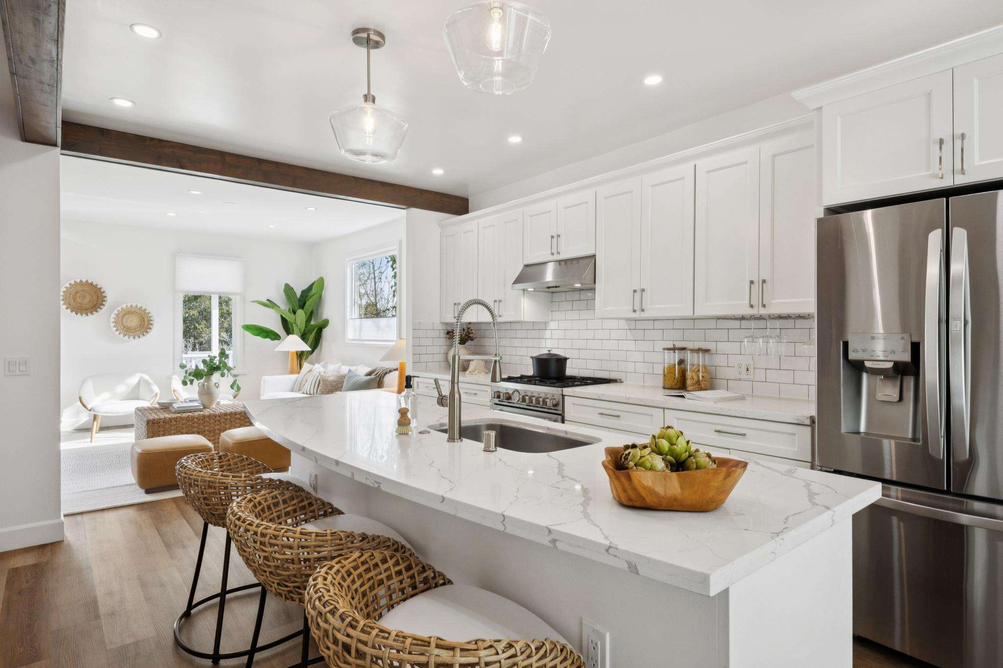 Located in Corte Madera’s historic downtown near Old Town Square and Menke Park, this beautifully remodeled Craftsman bungalow offers an exceptional lifestyle setting. Move-in ready, the 3-bedroom, 2.5-bath home provides approximately 1,600 sq ft of thoughtfully updated living space, blending timeless Craftsman character with refined modern design. Reimagined in 2020, the home features a bright, open floor plan where the living, dining, and kitchen areas flow seamlessly to a spacious deck and landscaped yard, ideal for everyday living, entertaining, and effortless indoor-outdoor enjoyment.